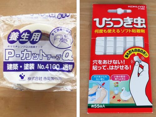 養生テープとコクヨ「ひっつき虫」 関東地方の団地に住んでいます。土曜の夜、そろそろ寝ようとしていたら地震が。ハンガーラックなどが揺れ、慌ててヘルメットを被ってテレビをつけたりしました。 その日は余震がなかったものの、東日本大震災を思い出して…