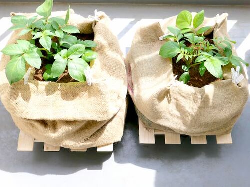芽かきをしました(左:ぽろしり、右:タワラヨーデル) ジャガイモの葉の変形 ベランダの日当たりに変化が… ベランダで野菜を栽培しています。万年初心者です。 去年の秋から、可燃ゴミ処分できる培養土を使っています。 少し前に、袋栽培のジャガイモの芽…